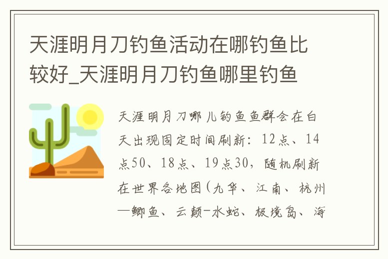 天涯明月刀釣魚活動在哪釣魚比較好_天涯明月刀釣魚哪里釣魚