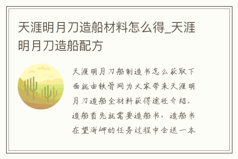 天涯明月刀造船材料怎么得_天涯明月刀造船配方