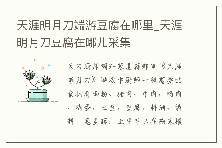 天涯明月刀端游豆腐在哪里_天涯明月刀豆腐在哪兒采集