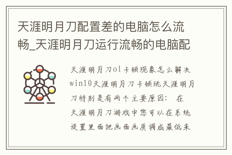 - 天涯明月刀配置差的電腦怎么流暢_天涯明月刀運(yùn)行流暢的電腦配置
