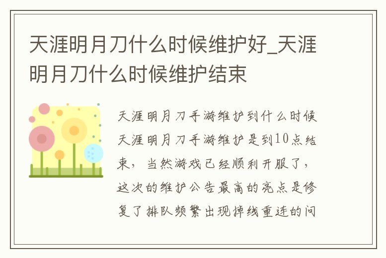天涯明月刀什么時候維護好_天涯明月刀什么時候維護結束