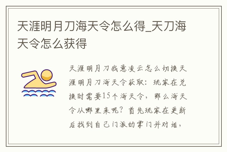 天涯明月刀海天令怎么得_天刀海天令怎么獲得