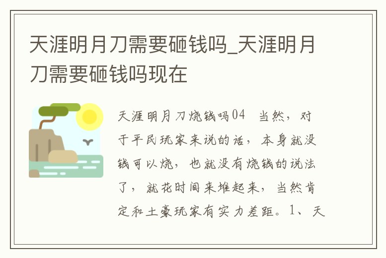 天涯明月刀需要砸錢嗎_天涯明月刀需要砸錢嗎現(xiàn)在