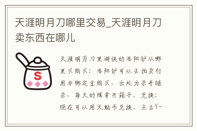 天涯明月刀里游俠的洛陽鏟從哪里買