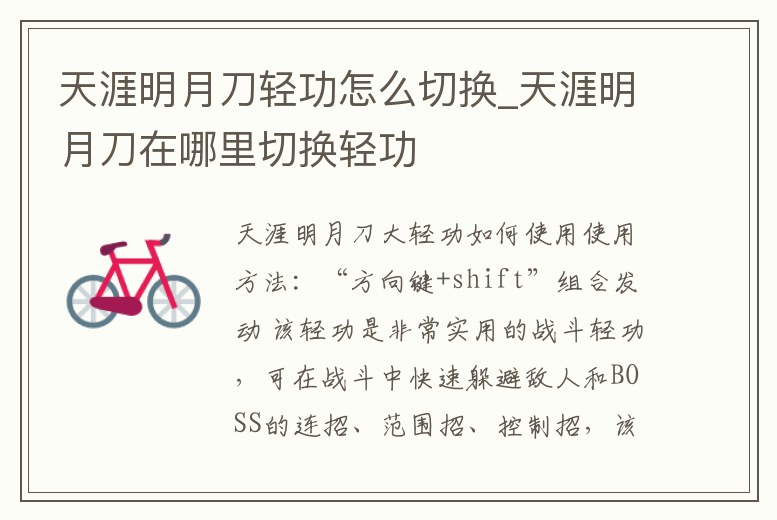 天涯明月刀輕功怎么切換_天涯明月刀在哪里切換輕功