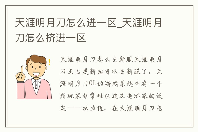 天涯明月刀怎么進(jìn)一區(qū)_天涯明月刀怎么擠進(jìn)一區(qū)
