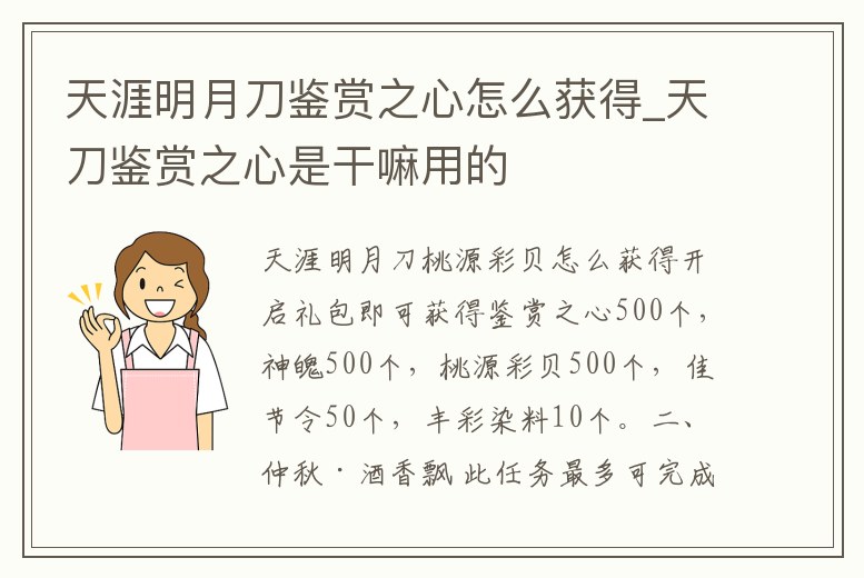 天涯明月刀鑒賞之心怎么獲得_天刀鑒賞之心是干嘛用的