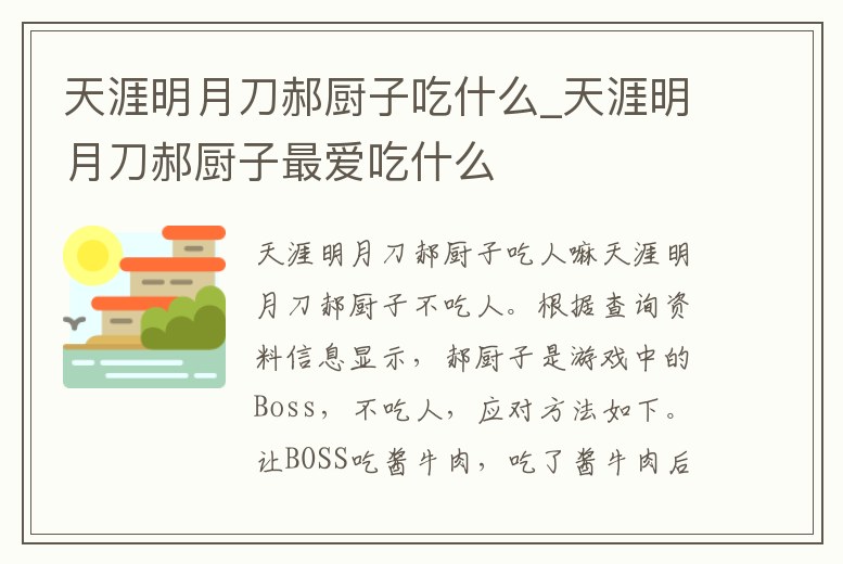 天涯明月刀郝廚子吃什么_天涯明月刀郝廚子最愛吃什么