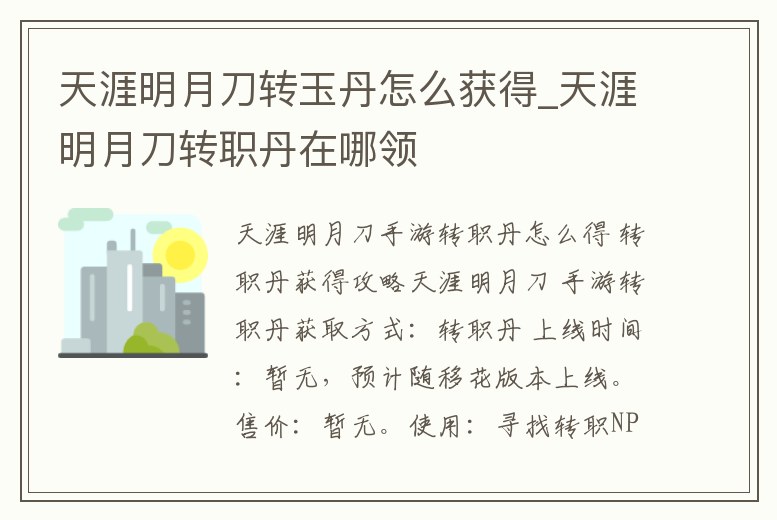 - 天涯明月刀轉(zhuǎn)玉丹怎么獲得_天涯明月刀轉(zhuǎn)職丹在哪領(lǐng)
