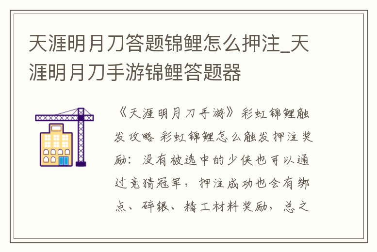天涯明月刀答題錦鯉怎么押注_天涯明月刀手游錦鯉答題器