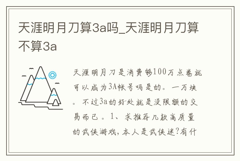 天涯明月刀算3a嗎_天涯明月刀算不算3a