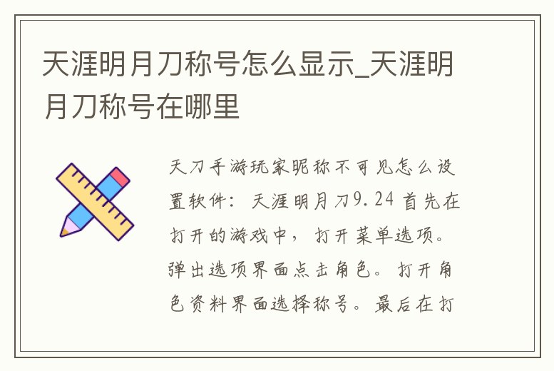 天涯明月刀稱號怎么顯示_天涯明月刀稱號在哪里