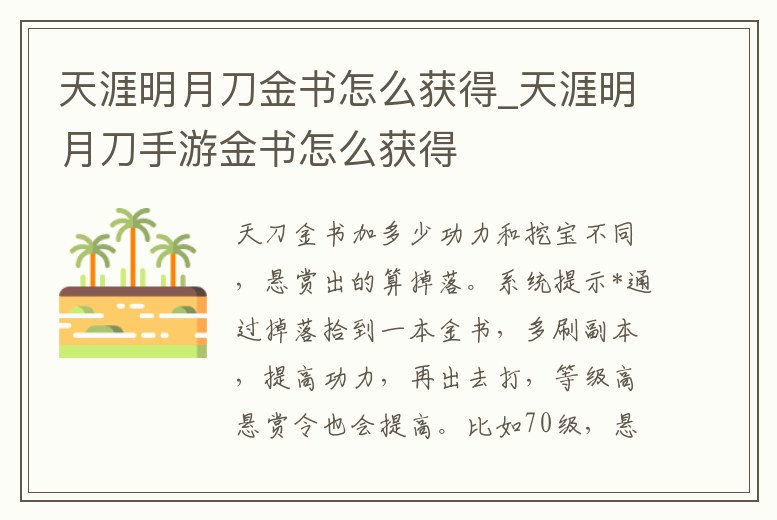 - 天涯明月刀金書怎么獲得_天涯明月刀手游金書怎么獲得