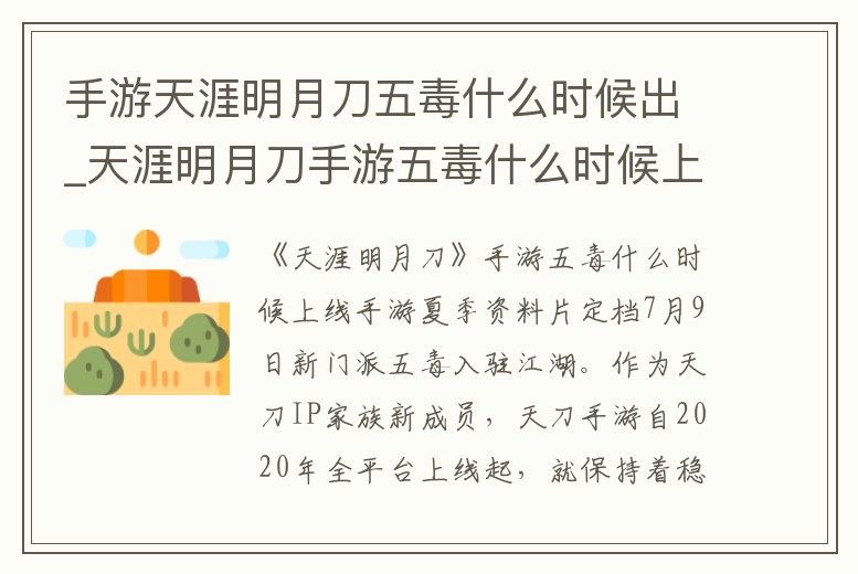 手游天涯明月刀五毒什么時候出_天涯明月刀手游五毒什么時候上線