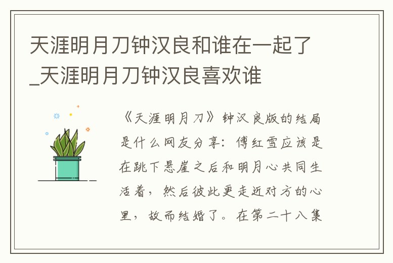 2、誰知道鐘漢良演的天涯明月刀的結局