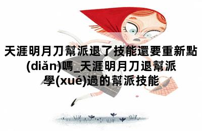 - 天涯明月刀幫派退了技能還要重新點(diǎn)嗎_天涯明月刀退幫派學(xué)過的幫派技能