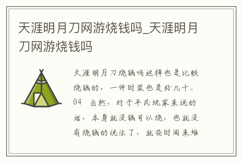 天涯明月刀網游燒錢嗎_天涯明月刀網游燒錢嗎