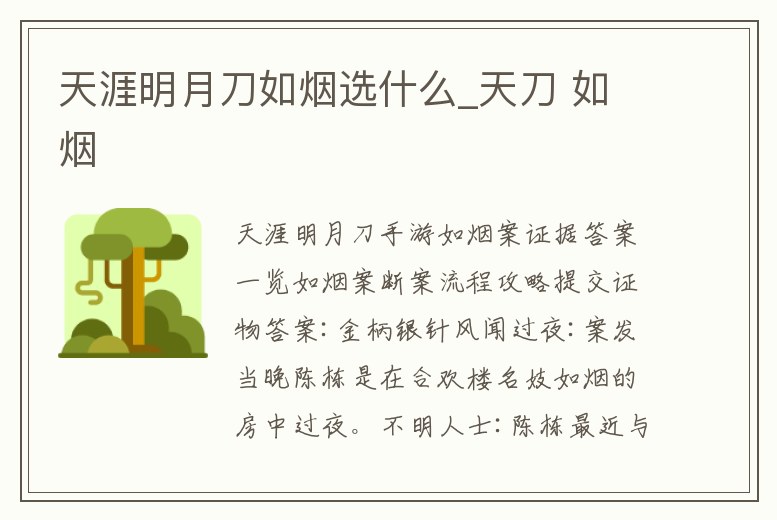 天涯明月刀手游如煙案證據(jù)答案一覽 如煙案斷案流程攻略