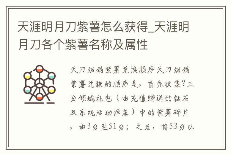 天涯明月刀紫薯怎么獲得_天涯明月刀各個紫薯名稱及屬性
