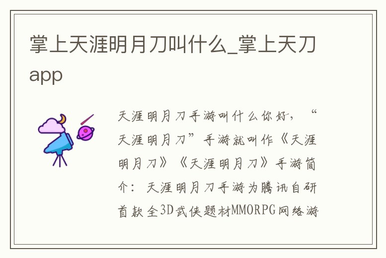 你好,“天涯明月刀”手游就叫作《天涯明月刀》《天涯明月刀》手游簡介:天涯明月刀手游為騰訊自研首款全3D武俠題材MMORPG網絡游戲。游戲以中華正統武俠文化為創意基礎,結合大量國際先進次世代技術運用,帶給玩家具有純正中國風畫。