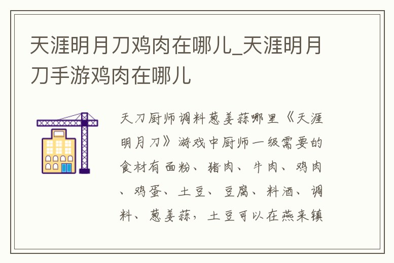 天涯明月刀雞肉在哪兒_天涯明月刀手游雞肉在哪兒