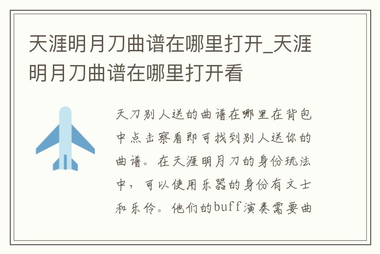 - 天涯明月刀好友送的曲譜怎么用_天涯明月刀好友送的曲譜在哪