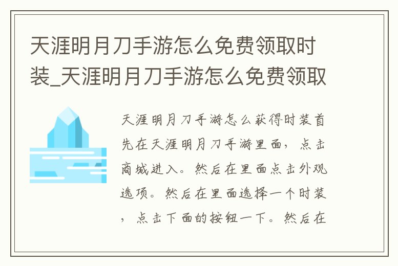 - 天涯明月刀手游怎么免費(fèi)領(lǐng)取時(shí)裝_天涯明月刀手游怎么免費(fèi)領(lǐng)取時(shí)裝禮盒