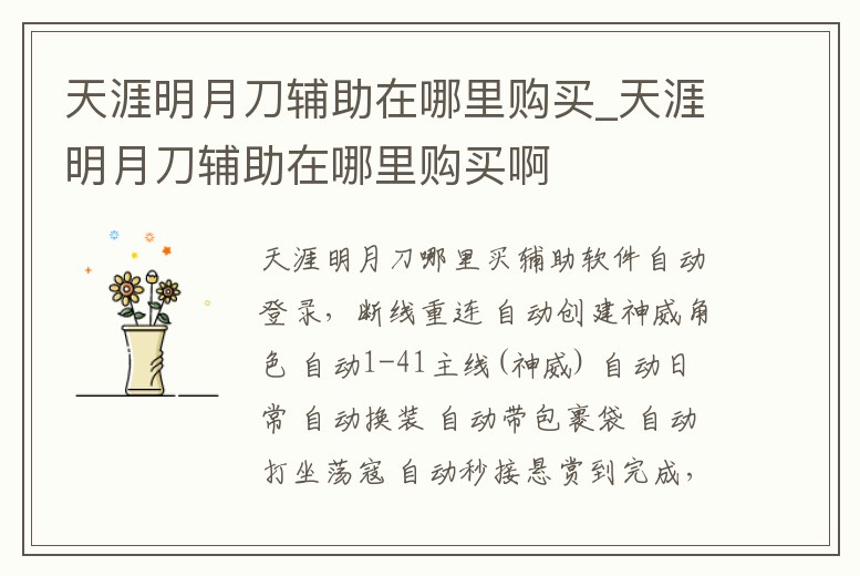 天涯明月刀輔助在哪里購買_天涯明月刀輔助在哪里購買啊
