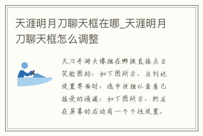 天涯明月刀聊天框在哪_天涯明月刀聊天框怎么調整