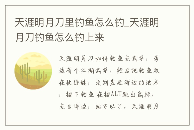 天涯明月刀如何釣魚