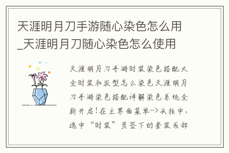 天涯明月刀手游隨心染色怎么用_天涯明月刀隨心染色怎么使用