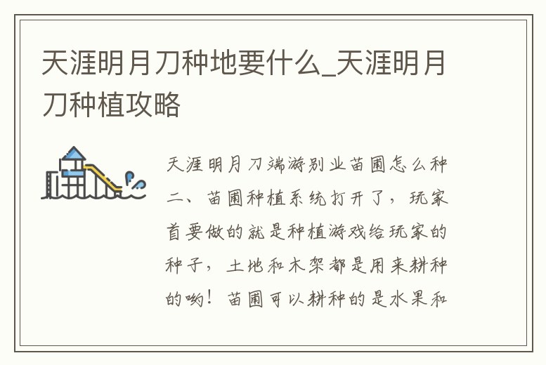 天涯明月刀種地要什么_天涯明月刀種植攻略