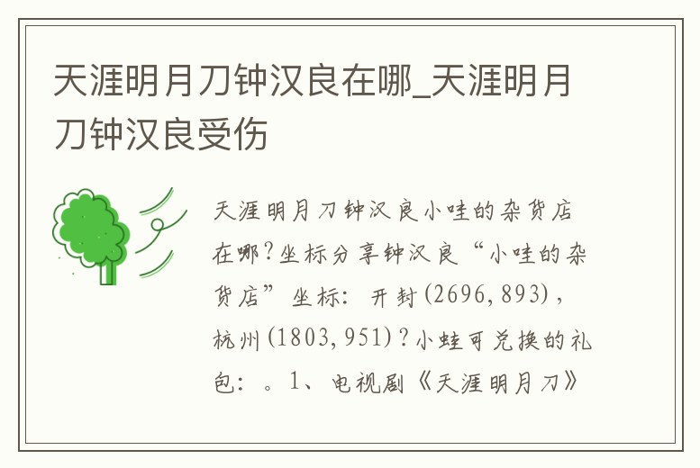 天涯明月刀鐘漢良在哪_天涯明月刀鐘漢良受傷