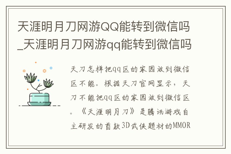 天涯明月刀網(wǎng)游QQ能轉(zhuǎn)到微信嗎_天涯明月刀網(wǎng)游qq能轉(zhuǎn)到微信嗎安全嗎