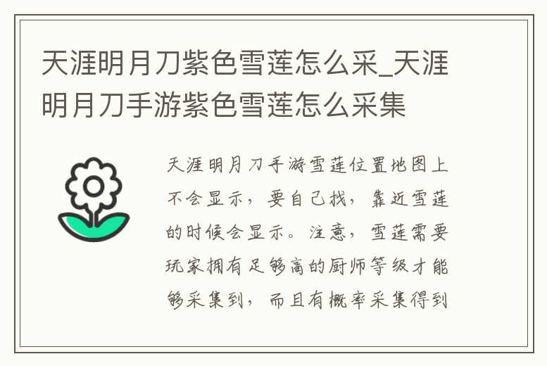 天涯明月刀紫色雪蓮怎么采_天涯明月刀手游紫色雪蓮怎么采集