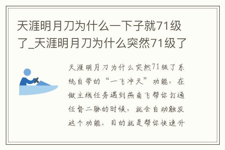 天涯明月刀為什么一下子就71級了_天涯明月刀為什么突然71級了