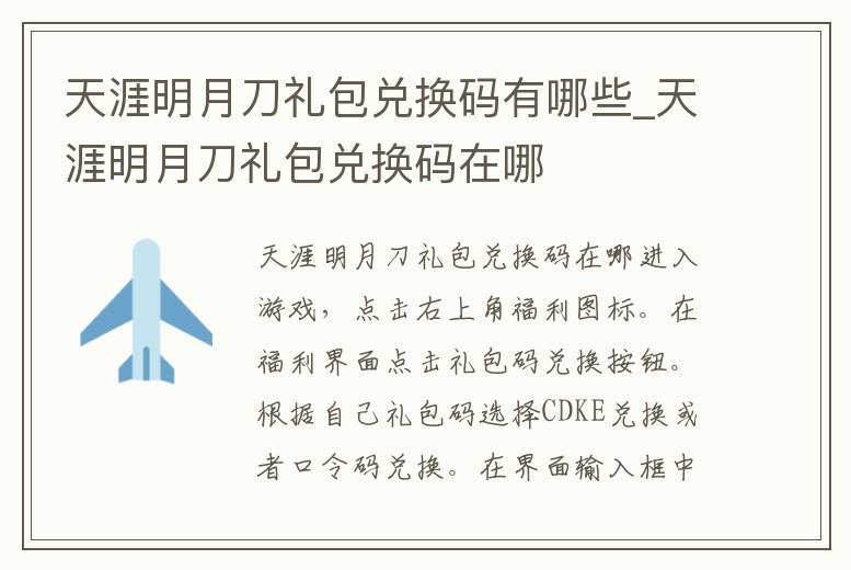 天涯明月刀禮包兌換碼有哪些_天涯明月刀禮包兌換碼在哪