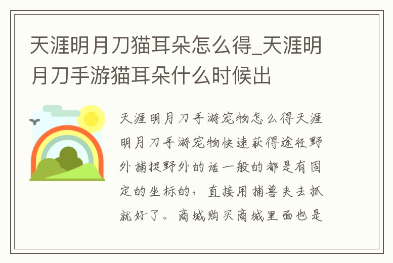 天涯明月刀貓耳朵怎么得_天涯明月刀手游貓耳朵什么時候出