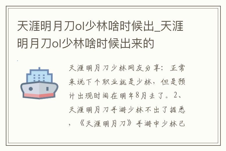 天涯明月刀ol少林啥時候出_天涯明月刀ol少林啥時候出來的