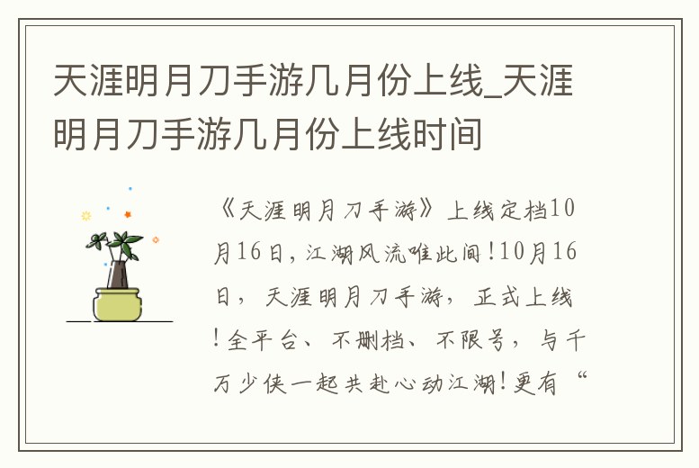 天涯明月刀手游幾月份上線_天涯明月刀手游幾月份上線時間