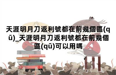 - 天涯明月刀返利號都在前幾個區(qū)_天涯明月刀返利號都在前幾個區(qū)可以用嗎