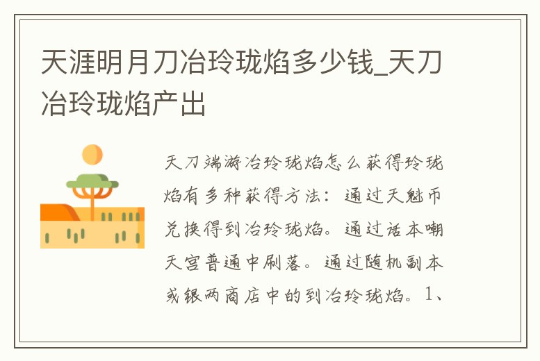 天涯明月刀冶玲瓏焰多少錢_天刀冶玲瓏焰產出