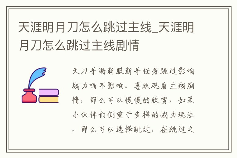 天涯明月刀怎么跳過主線_天涯明月刀怎么跳過主線劇情