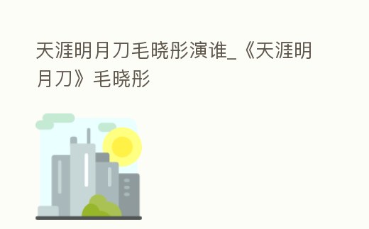 天涯明月刀毛曉彤演誰_《天涯明月刀》毛曉彤