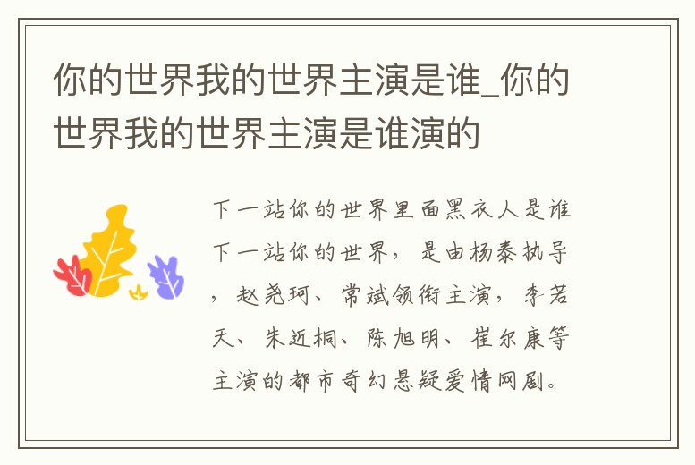你的世界我的世界主演是誰_你的世界我的世界主演是誰演的
