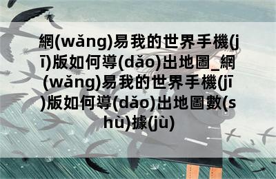 網(wǎng)易我的世界手機(jī)版如何導(dǎo)出地圖_網(wǎng)易我的世界手機(jī)版如何導(dǎo)出地圖數(shù)據(jù)