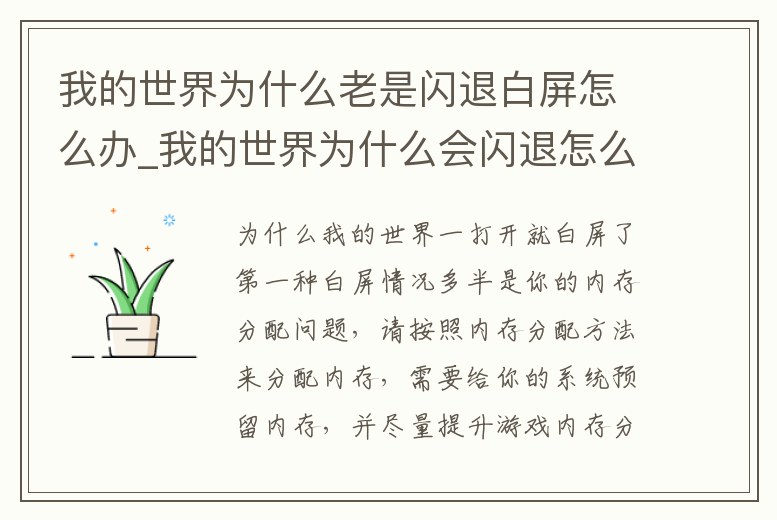 我的世界為什么老是閃退白屏怎么辦_我的世界為什么會閃退怎么辦