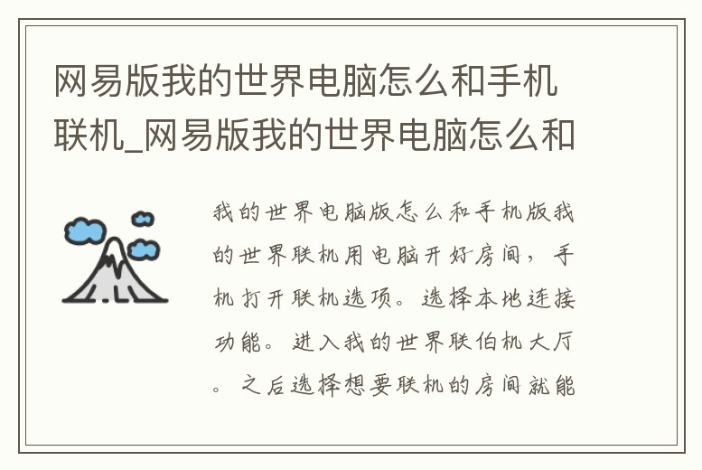 網易版我的世界電腦怎么和手機聯機_網易版我的世界電腦怎么和手機聯機