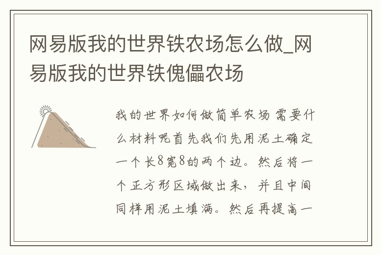 網易版我的世界鐵農場怎么做_網易版我的世界鐵傀儡農場