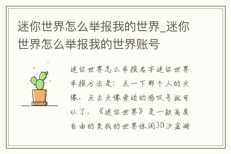 迷你世界怎么舉報我的世界_迷你世界怎么舉報我的世界賬號